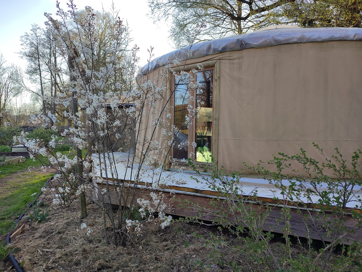 Aux pieds de la basilique des champs, a grandi une authentique gère mongole dans son merveilleux écrin de verdure. Subtil équilibre de rusticité et de confort moderne, elle est le lieu idéal pour contempler le temps qui passe et refaire ses forces. Le silence et l'isolement vous combleront mais le village et les associations proches vous offriront, si vous le souhaitez, mille et une occasions de rencontre, de convivialité.