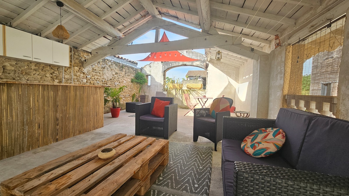 Au cœur vibrant du village, un studio charmant, entièrement rénové, s'ouvre sur une grande terrasse à l'atmosphère "guinguette". Imaginez-vous profiter de cet espace idéalement conçu pour les caresses du soleil, les pauses lecture enchantées, les déjeuners bercés par la brise et les soirées festives autour d'un apéritif ou d'un barbecue, pour des vacances inoubliables.