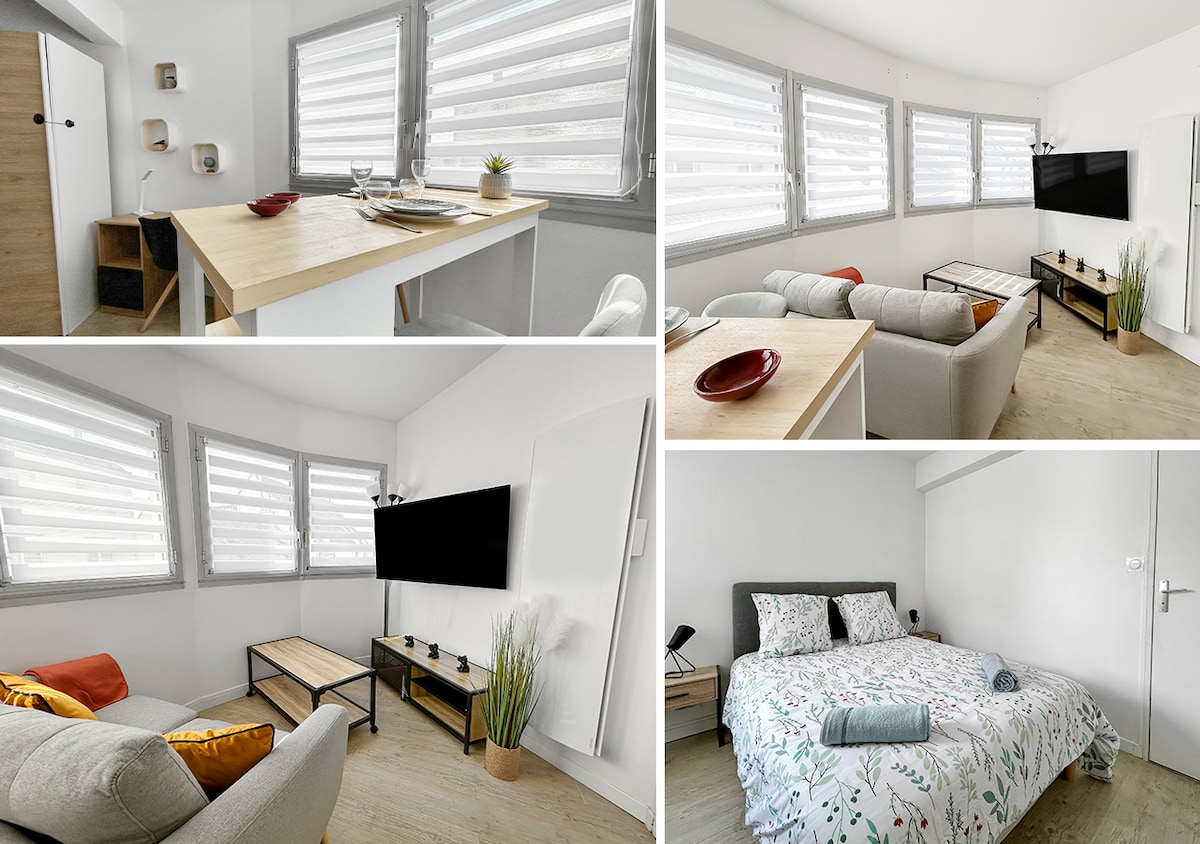🏡 T2 de 50 m² au calme, dans une cour privée au cœur de Montoir-de-Bretagne. 🛍️ Commerces et bus à 200 m, 🚗 à 2 km d’Airbus et 10 min des Chantiers de l’Atlantique. 🌊 Plages à proximité (Saint-Brevin, La Baule…). Wi-Fi fibre ⚡, cuisine équipée 🍽️, ventilateur de plafond, lave-linge 🧺, machine à café ☕( Tassimo). Linge fourni 🛏️. Cave dispo pour vos vélos 🚲. Bienvenue ! 😊 Les animaux sont les bienvenus mais ils doivent juste être déclaré au moment de la réservation. Merci !
