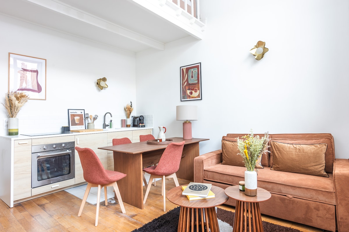 - Beautiful loft for 4 guests, fully renovated by an architect - Fully equipped kitchen: cooktop, refrigerator, microwave, washing machine, Nespresso coffee machine, kettle, toaster - Mezzanine bedroom with shower room - High-end double bed 140x200 (5★) - Comfortable living area with sofa bed and Wi-Fi - Dining area & separate toilet - 10-minute walk from the Jardin du Luxembourg - Quiet and secure building, on the 1st floor with elevator - Many shops, cafés, and restaurants nearby