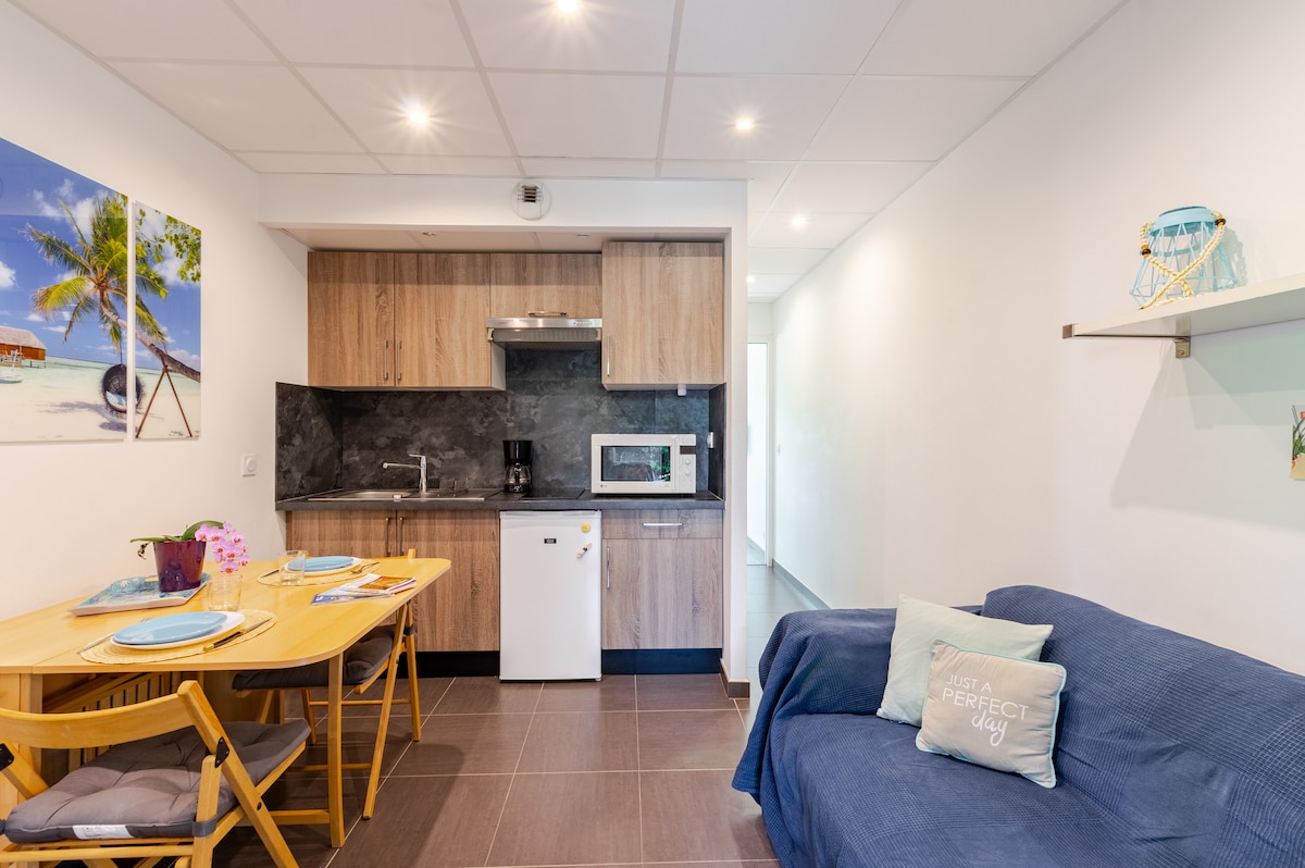 Le nid. 带空调和露台的单间公寓,中心位置