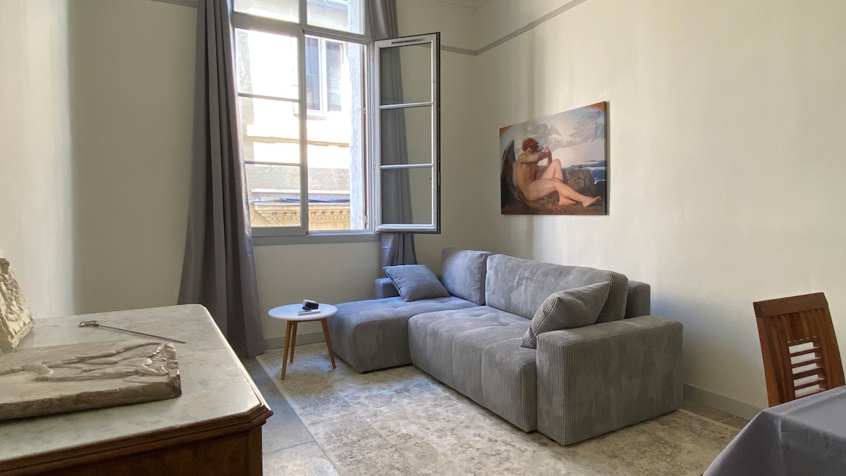 - Quartier Écusson (hyper centre, non accessible en voiture), T2 cosy calme bien équipé dans l'ancien rénové avec des matériaux de qualité situé au 1er étage sans ascenseur - A 15 minutes de la gare et à 10minutes à pied de la célèbre place de la Comédie - Où se Garer à proximité : Parking Peyrou Indigo (5 minutes) payants, rue du Faubourg Boutonnet et rues alentours - Arrêts de Tramway à proximité : "Albert 1er" (ligne 1 accès Comédie/Gare) et "Louis Blanc" (ligne 4 tour de Montpellier)