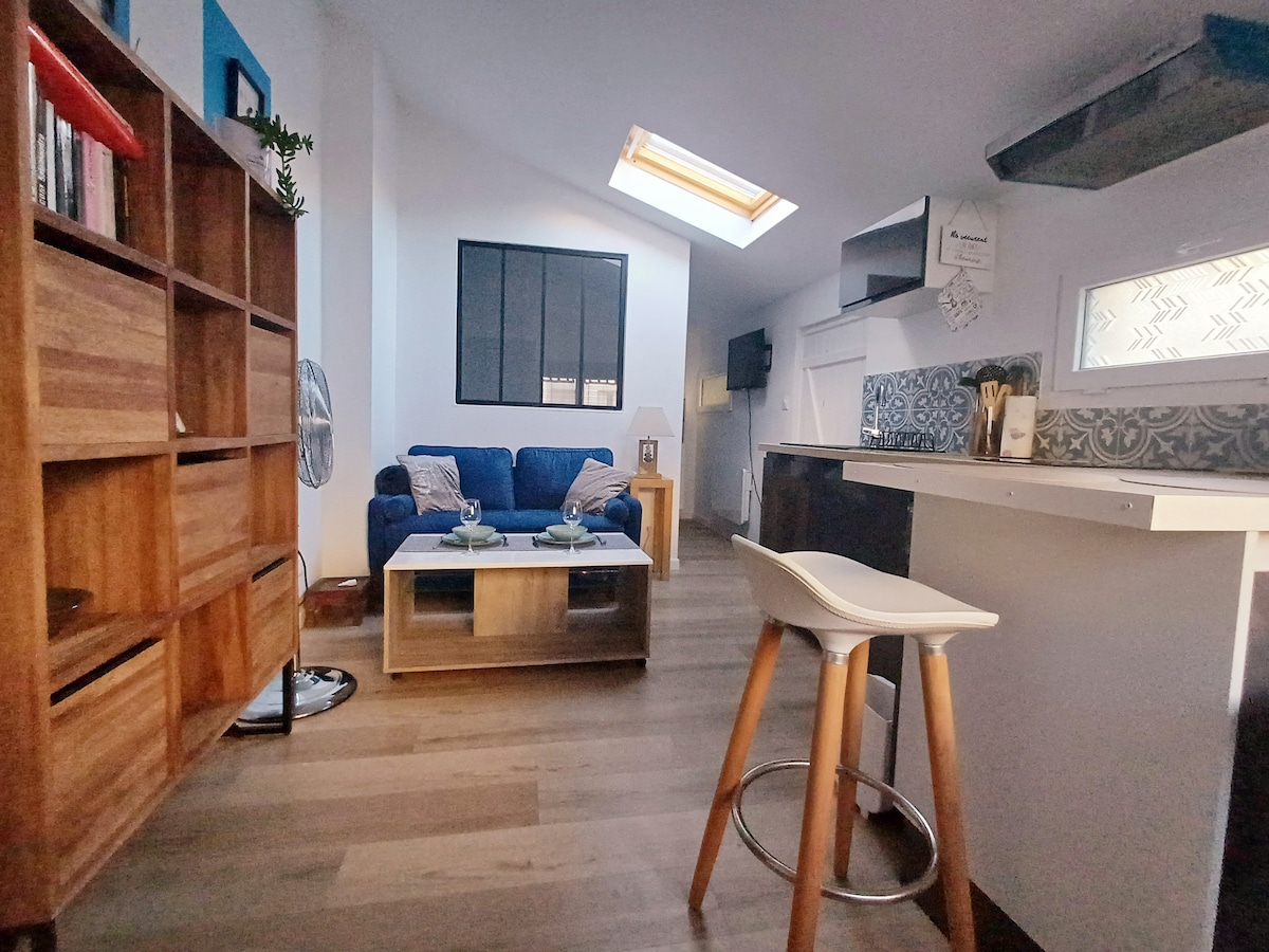 Logement unique et atypique classé 5 ⭐️⭐️⭐️⭐️⭐️, calme et élégant, situé en plein centre de Mussidan. C'est un grand loft de 80 m² au sol, sous combles (53 m² loi carrez). Vous serez séduit par le charme des combles aménagés. La chambre est ouverte sur le logement. - 4 personnes adultes +1 bébé (1 lit double, un canapé-lit Rapido et un lit parapluie) - Cuisine équipée - TV - Fibre - Draps, serviettes et linge de maison - Parking gratuit - Gare SNCF à 850 mètres - À moins de 3 km de l'A89