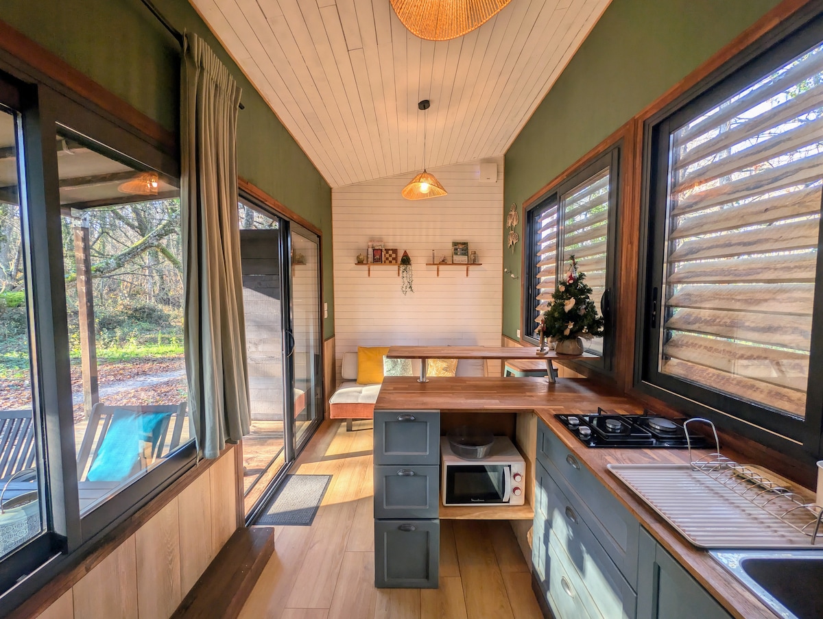 En couple ou en famille, venez tentez l'expérience d'un séjour nature à la Tiny house Lumen, et profitez d'un moment de détente immergé en pleine forêt accompagné par sa faune et sa flore. Prenez le temps de vous plonger dans le spa et terminer la soirée autour d’un feu. Il vous est possible d'agrémenter votre séjour de diverse prestation, comme le service du petit déjeuner ou bien pannier appérif.