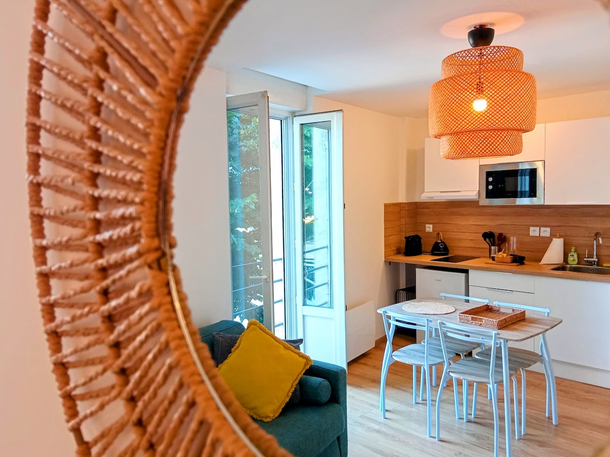 Cette maison, construction des années 70, vient d’être entièrement rénovée , et conçue pour rendre le séjour agréable. Située à quelques minutes à pied du centre, où vous trouverez commerces , bars, restaurants, marché, animations nocturnes, ainsi qu’un cinéma présentant des films en avant-première… Vous aurez plaisir à déjeuner au jardin, ou profiter de la terrasse couverte les jours brumeux. Stationnement gratuit à proximité de la maison, et sur la place des Tilleuls très proche