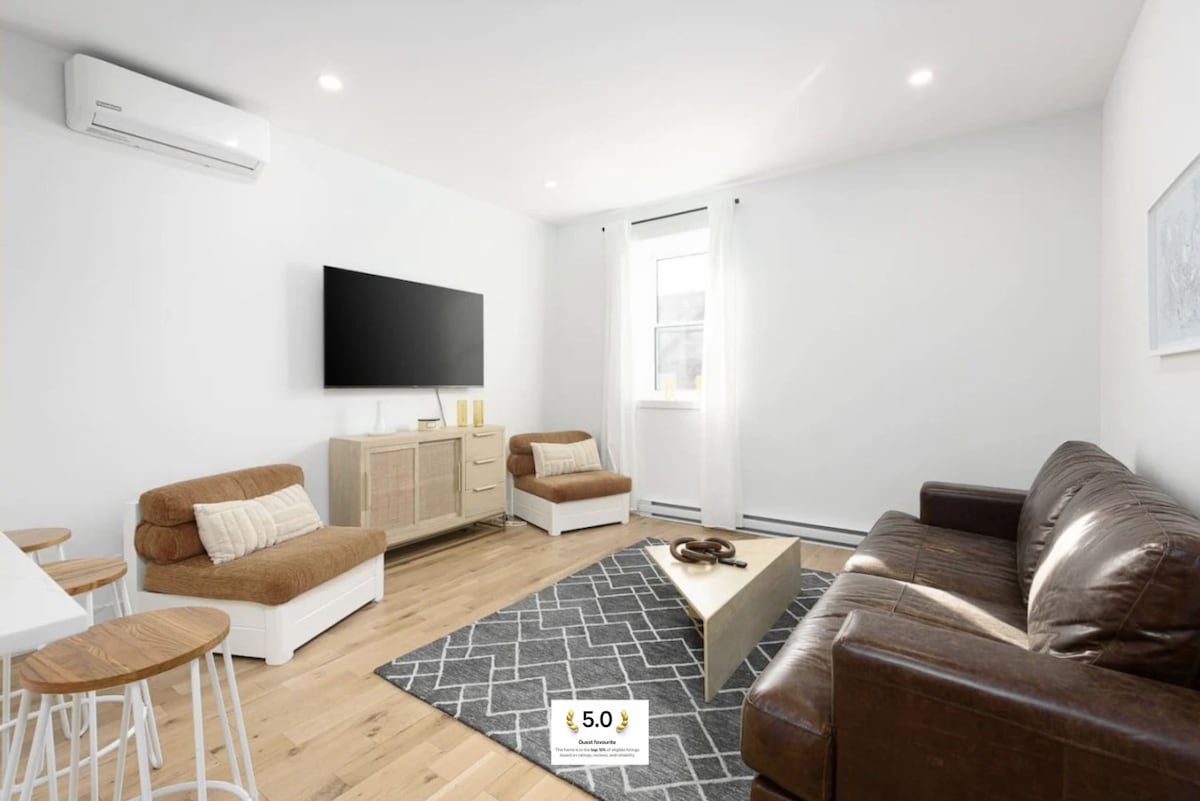 Welcome to our stylish 1-bedroom unit in Little Italy, Montreal! Designed for comfort and convenience, our space is perfect for business travellers. Accessible by a common elevator in a well-maintained building, enjoy a charming atmosphere. Relax in a cozy queen-size bed, use the fully equipped kitchen, and unwind in the spacious bathroom and tub. Stay connected with free wifi, and Netflix, and enjoy a welcome starter amenity kit with fresh coffee and treats.