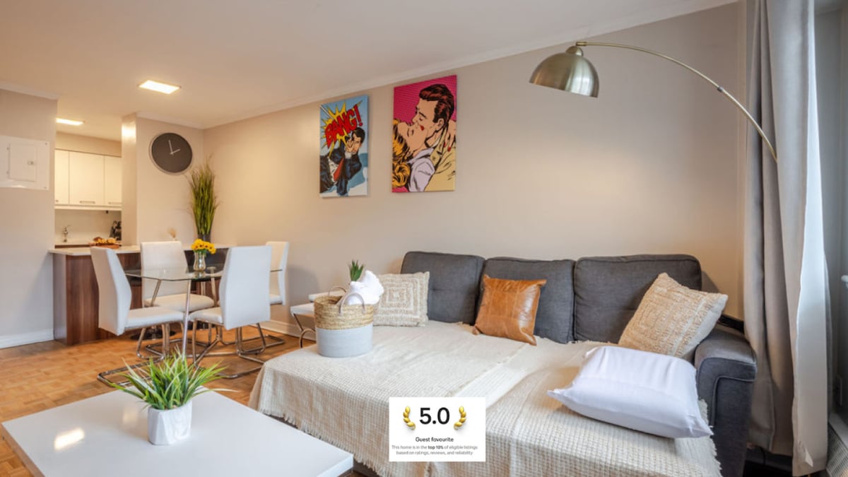 🛏️ Sleep Like a Dream – Plush queen-sized bed with hotel-quality linens. Rest easy after exploring Montreal. 📺 Netflix & Chill Ready – Smart TV with streaming apps. 🚿 Modern & Spotless Bathroom – 🍳 Fully Equipped Kitchen – Save $$ on dining out! Cook like a pro with all the essentials. 🚗 RARE FIND: FREE Parking! –Park for FREE. 🚀 Work & Play – High-speed WiFi + dedicated workspace for digital nomads. ✅ 14 mins to Downtown Montreal – Perfect for concerts, festivals, nightlife!