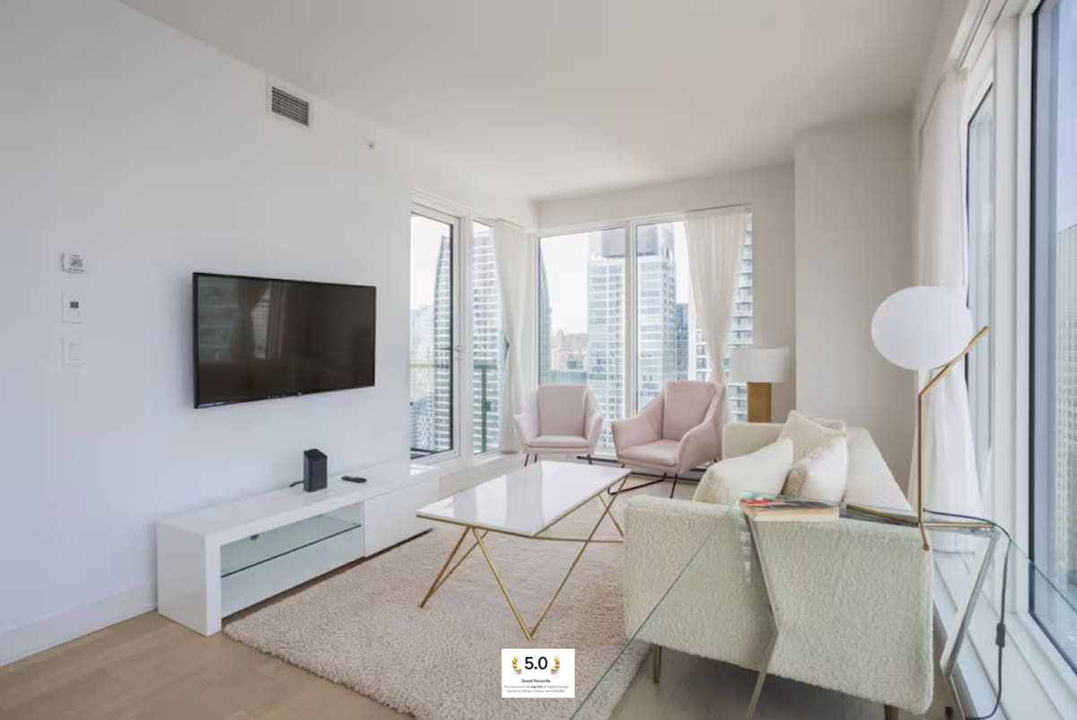 Escape to a stylish downtown apartment perfect for families and groups. Enjoy a private balcony, two queen beds, and a pull-out sofa. Steps from Square Victoria and minutes from Old Montreal, explore the city's best attractions.