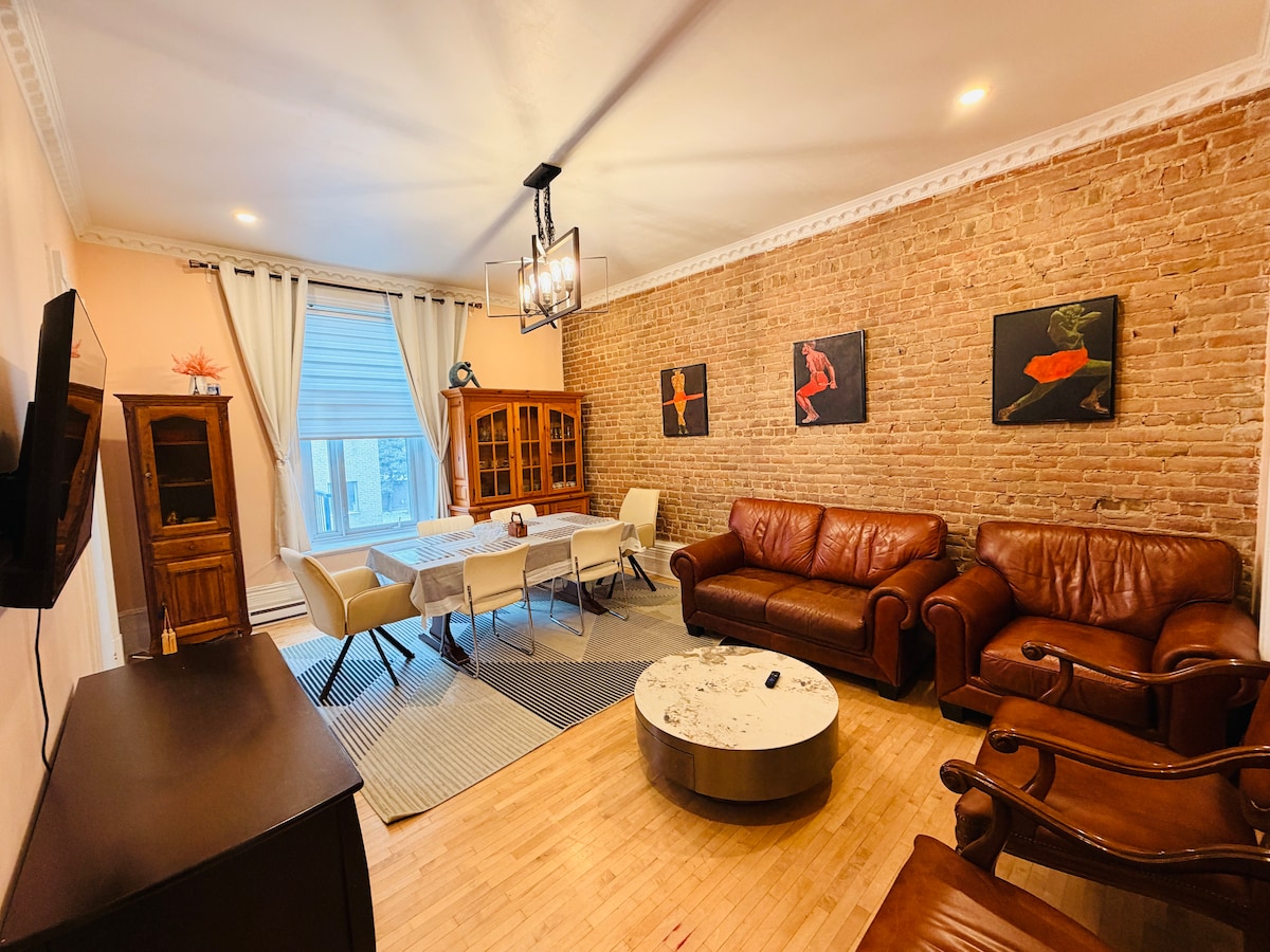 Enjoy this spacious 2400 sq. Ft. 2-floor condo. Located in the heart of downtown Montreal's trendiest neighborhood, plateau Mount Royal. This open concept sleeps 20 guests in 4 separate bedrooms with 4 Balconies, 10-foot high ceilings with exposed brick walls, air-conditioning, Netflix. In the heart of all the action across the street from a spa/gym. Walking distance to bars, restaurants. Metered parking in front, 14$/day parking lot nearby. FOR 1-DAY BOOKINGS, MSG US FIRST.