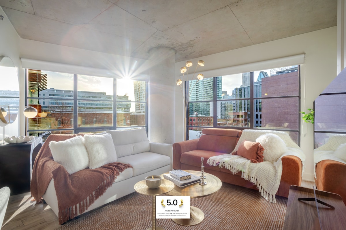 The Savvy is a spacious luxury 1-bedroom apartment in the heart of Vieux-Montréal’s Old Port, steps from restaurants and the riverfront, sleeping up to 4 guests in comfort. Perfect for winter escapes, family trips, business travel, Palais des congrès events, or a refined one-night stay. With soaring ceilings, historic brick, elegant décor, and a quiet courtyard-facing bedroom, it feels like a boutique hotel yet fully private, with premium amenities, fast Wi-Fi, and a 5-star host at your service.