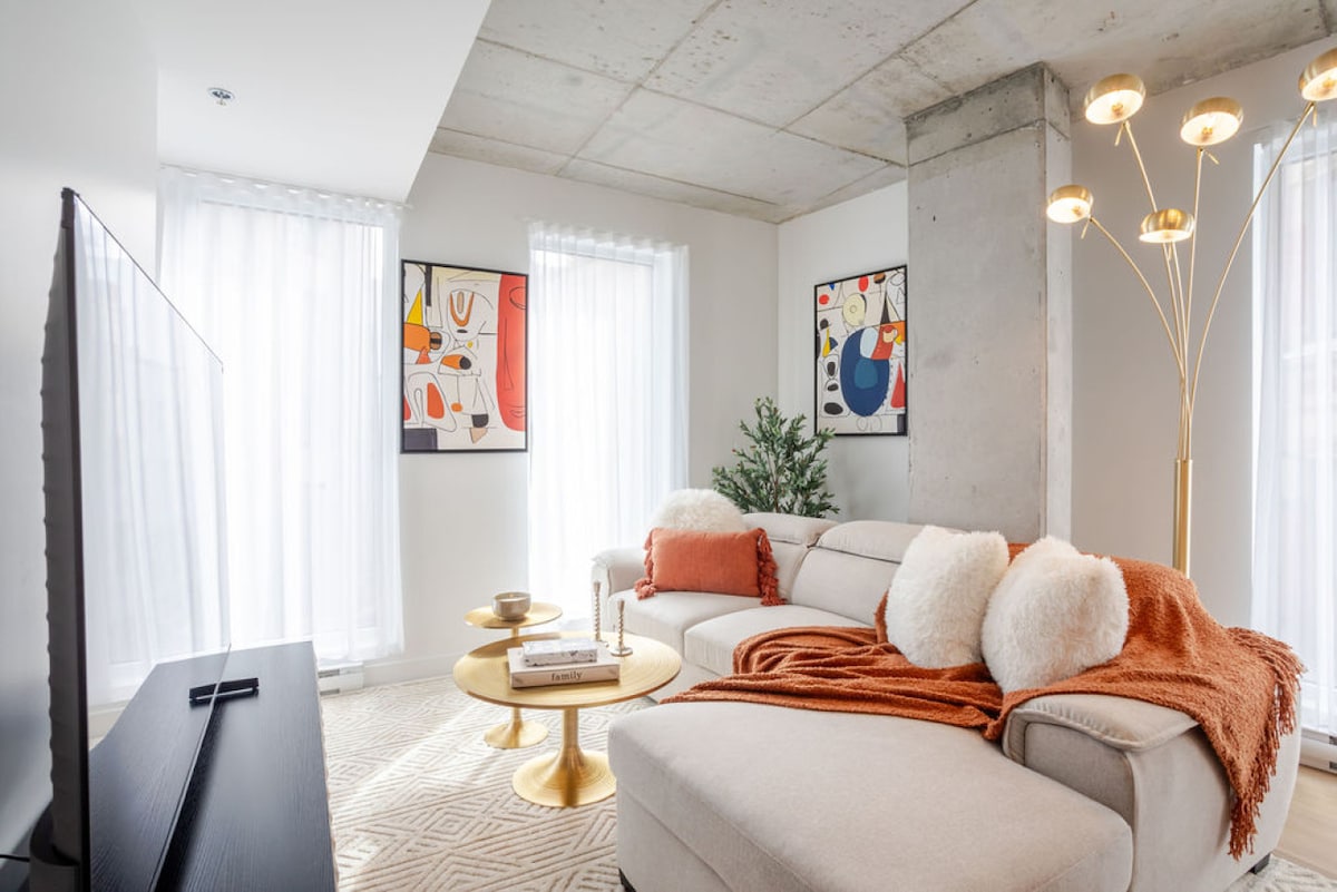 Magnifique appartement dans le cœur de Montréal, à 3 minutes à pied du métro et 10 minutes de la gare centrale, il est idéal pour découvrir la ville. L'appartement dispose de 2 grandes chambres super lumineuses ainsi que d'une terrasse tout équipée pour faire des barbecues. Vous pourrez aussi profiter du projecteur pour une soirée film ou vous détendre dans le spa en été. La cuisine dispose de tout le nécessaire, mais si vous préférer manger dehors le quartier est plein de très bon restaurants.