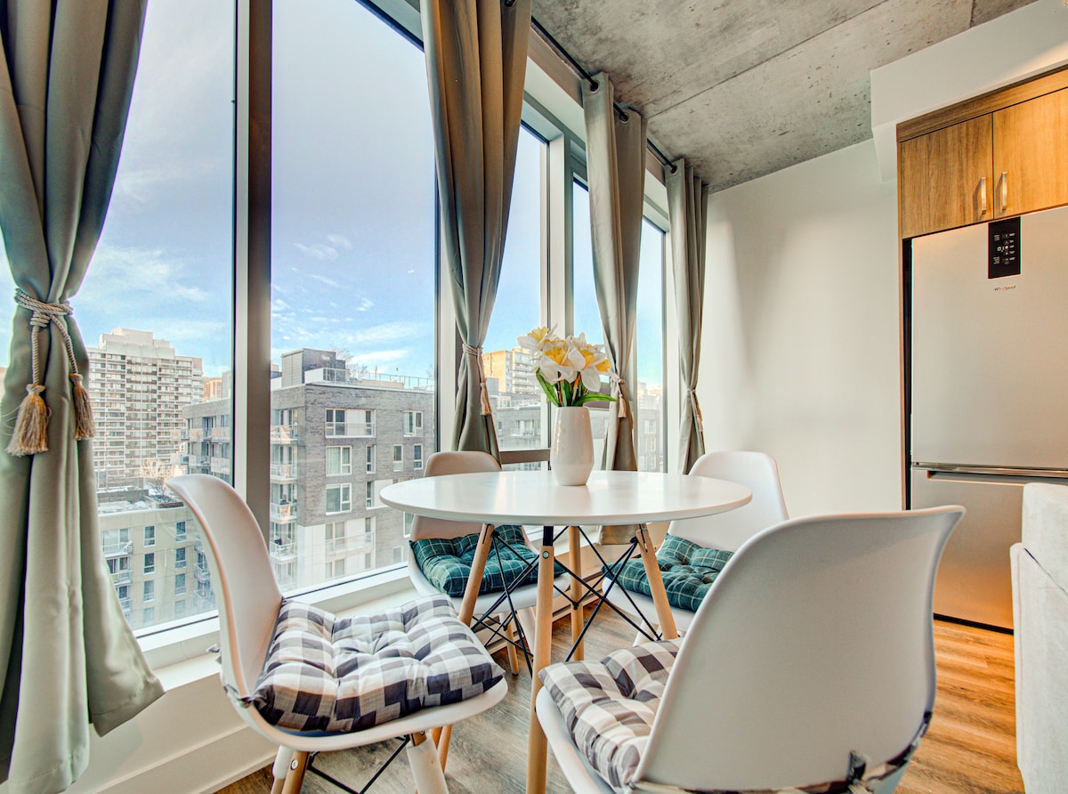 Profitez de l'atmosphère stylisé de ce logemeThis modern, fully equipped apartment offers a breathtaking panoramic view of Montreal. Ideally located downtown, it’s just 2 minutes from Atwater station and 3 minutes from Guy-Concordia station on the green line, providing quick access to the city. Steps from Sainte-Catherine, trendy cafés, restaurants, boutiques, and Alexis Nihon Shopping Center, everything you need is nearby.