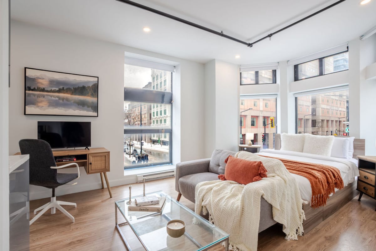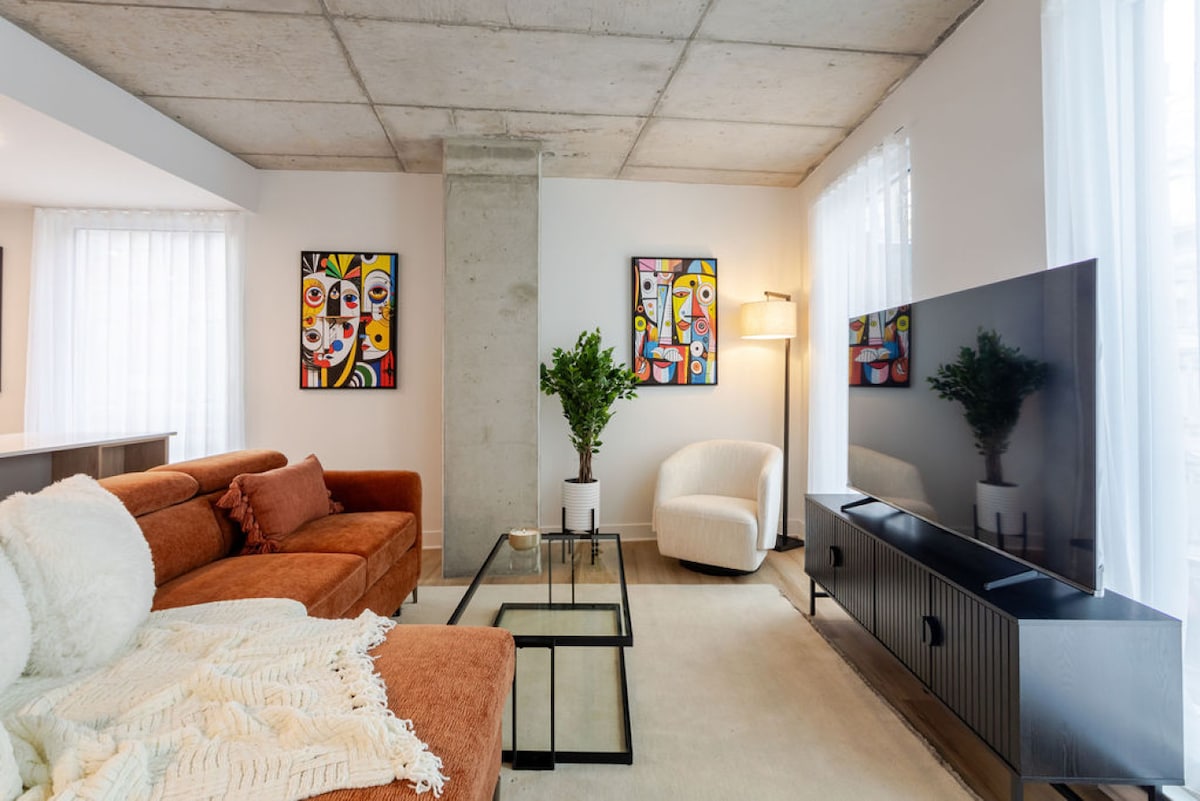 Indulge in the charm of the Plateau in this bright, stylish loft! Natural light floods the open-concept space, accentuating exposed brick walls, soaring ceilings, and modern design. Step outside and immerse yourself in a vibrant, artsy neighbourhood filled with trendy cafés, boutiques, and galleries. Walk to top restaurants, theatres, grocery stores and markets, metro stations, bike paths, and Mont Royal —everything you need for an authentic, unforgettable stay in the heart of the city!🚲🍽✨