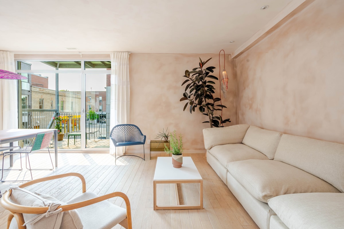 Indulge in the charm of the Plateau in this bright, stylish loft! Natural light floods the open-concept space, accentuating exposed brick walls, soaring ceilings, and modern design. Step outside and immerse yourself in a vibrant, artsy neighbourhood filled with trendy cafés, boutiques, and galleries. Walk to top restaurants, theatres, grocery stores and markets, metro stations, bike paths, and Mont Royal —everything you need for an authentic, unforgettable stay in the heart of the city!🚲🍽✨