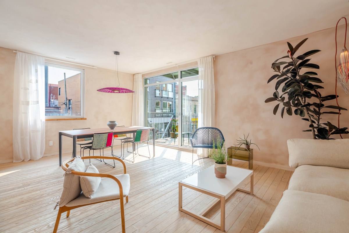 Indulge in the charm of the Plateau in this bright, stylish loft! Natural light floods the open-concept space, accentuating exposed brick walls, soaring ceilings, and modern design. Step outside and immerse yourself in a vibrant, artsy neighbourhood filled with trendy cafés, boutiques, and galleries. Walk to top restaurants, theatres, grocery stores and markets, metro stations, bike paths, and Mont Royal —everything you need for an authentic, unforgettable stay in the heart of the city!🚲🍽✨