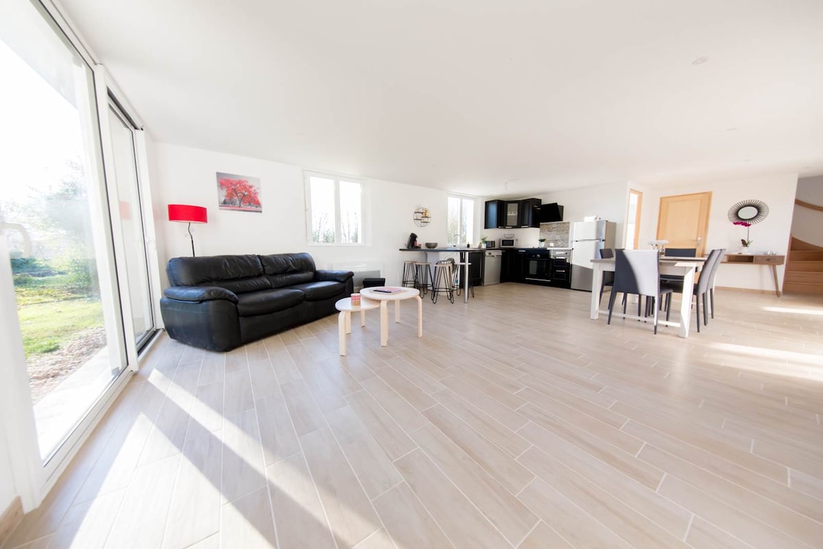 Magnificent ecolodge located in an outbuilding of the Mazeraie manor. The building has been restored with ecological and local materials. The very luxurious interior furnishings and the incredible view will give you a unique experience. The manor ideally located at the gates of Tours and near the various motorway axes will allow you to radiate to visit cellars and castles. Nature lovers, the croaking of frogs from March to August and the wood fire in winter will delight you.