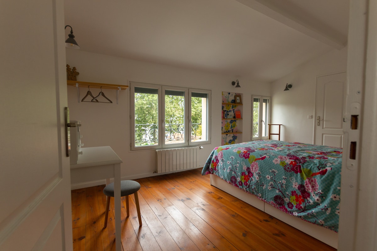 My house is at the back of a plant-lined courtyard. There are 2 bedrooms: - a large room with 1 double-bed queen size + 1 simple bed with a desk - a cosy little room with a double bed. The bathroom has a bath, a walk-in shower and toilets. Large living room, open fully equiped kitchen. Welcome for musicians : There is a piano at home! Important detail: My cat lives at home. I ask you to take good care of him (feed him and clean his litter). A parking is possible at certain dates (20 €/night)