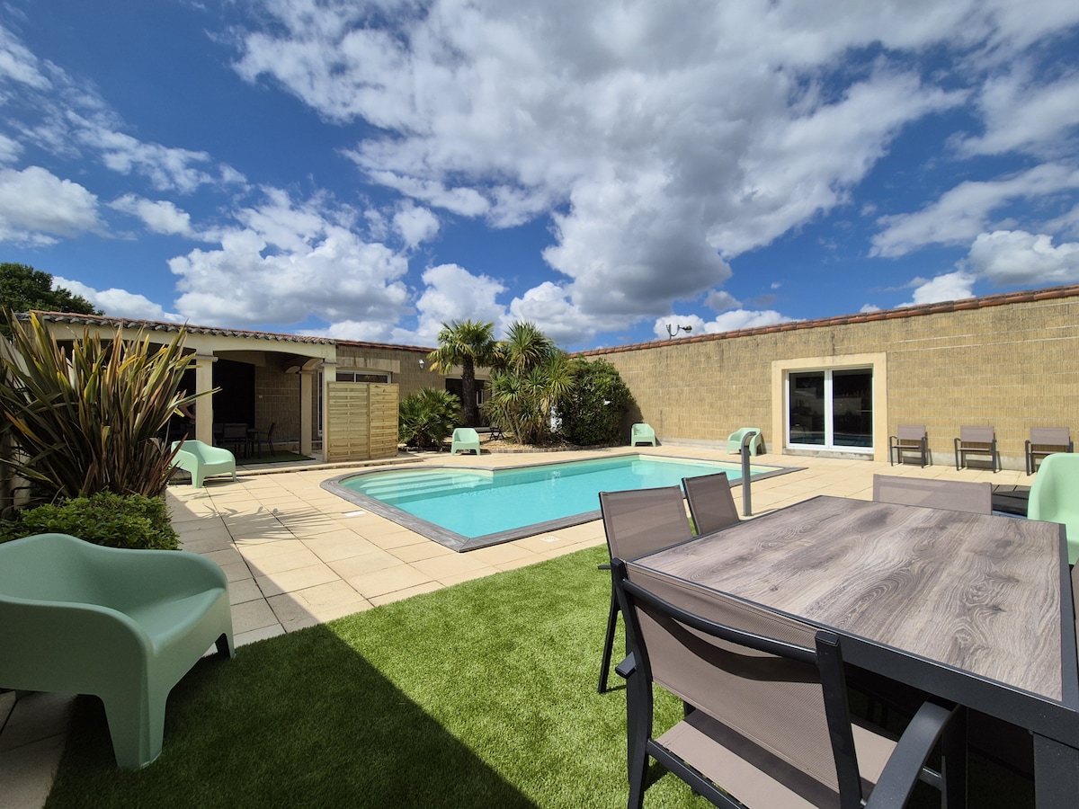 La maison est située à la campagne . C'est une maison rénovée dans une ancienne batisse agricole avec du charme Au milieu des champs et des vignes ,vous passerez un sejour au calme, le chant des oiseaux toute la journée, des grenouilles le soir en été . A 5mn du bourg avec les commerces essentiels. Composée de 3 chambres, d'une grande piece de vie ,cuisine equipée, salle de bain et wc separé. La salle de bain a été adaptée pour l'accueil de PMR. Terrasse,parking, terrain de jeux de boules.