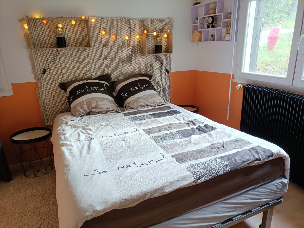Petit havre de paix, je l'appelle d’ailleurs mon petit coin de paradis ☺️....le logement se trouve en rez de jardin de mon chalet entouré d'un paysage verdoyant et calme. Vous profiterez d'une vue inoubliable sur la vallée et les montagnes qui l'entourent. Très bien situé pour visiter la région. Nous nous trouvons à 800 m d'altitude. Je reçois régulièrement des personnes en déplacement pour leur travail....quand ils viennent à deux, ils apprécient d'avoir chacun leur chambre.
