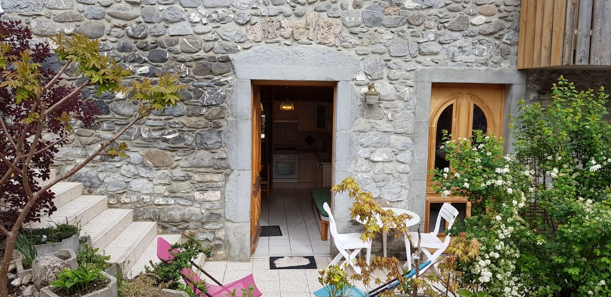 Situé dans le charmant village de Montriond . studio dans maison savoyarde de caractère. A 2 km de Morzine. Cadre bucolique à l'orée de la foret et de 2 cours d'eau. A 6' de voiture du pied des pistes, 3 'du lac Côté nuit: lit double +1 lit gigogne 2 personnes . une armoire côté cuisine: totalement équipée .TV. Wifi . Salle de bains comprenant : WC ,douche, lavabo, lave linge , petite table ,armoire,. terrasse avec petite table et chaises + chaises longues. Parking privatif