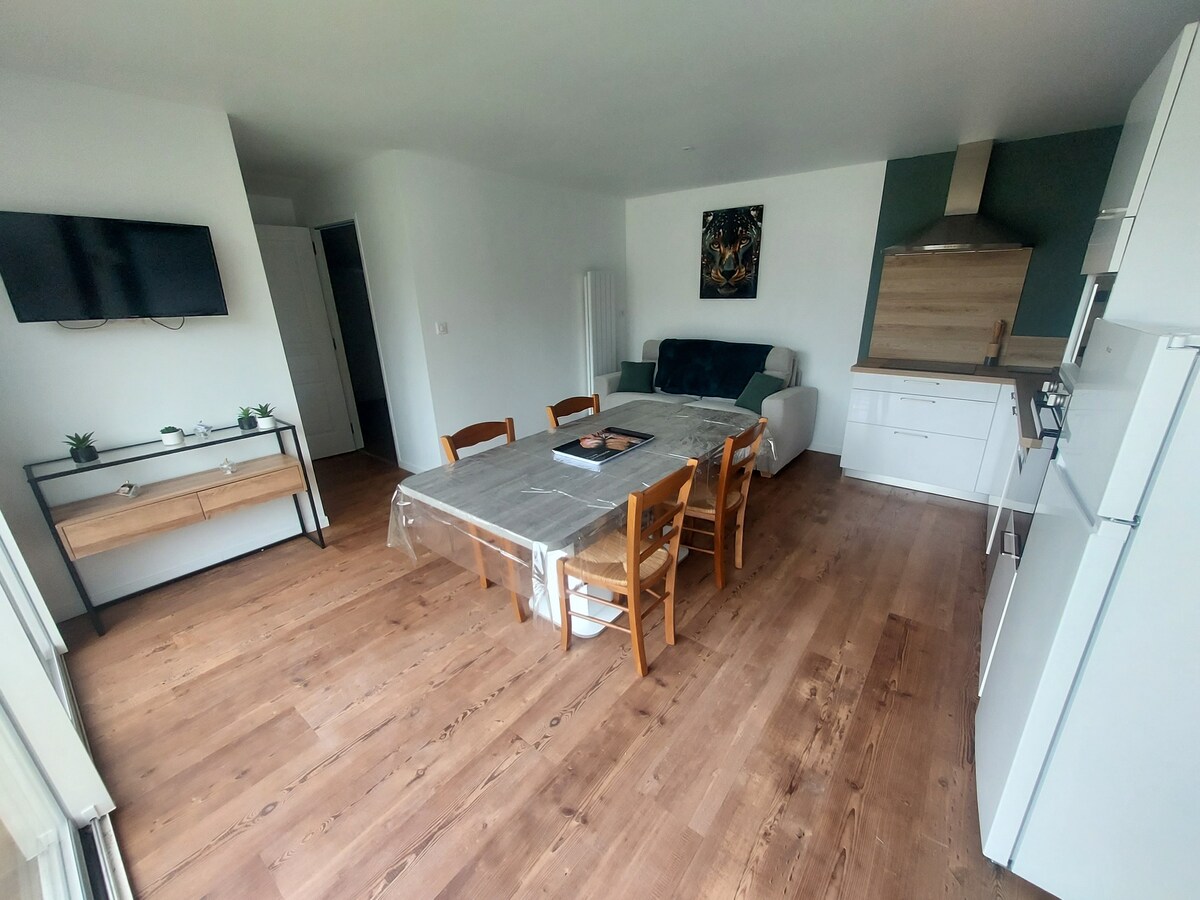 Simplify your life in this peaceful and central accommodation. At the foot of the mountain, you are 400m from the town center. T3 accommodation on the 1st floor with private exterior staircase composed of: 2 bedrooms with double bed and bathroom in each bedroom A separate toilet A pantry-laundry room A living room - living room - kitchen Independent access with key box. Free private parking. ☺️