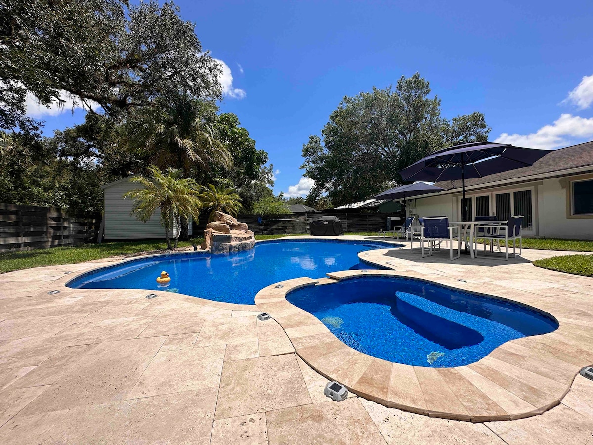 This is a newly renovated, beautiful vacation home for the whole family, or you and your friends. It is a 2/2 that sleeps up to 6 comfortably. The centerpiece is a three seasons room that opens on all sides, adding an extra spacious feeling to the whole place. Also included is a newly installed, state-of-the-art Pool which is perfect for a getaway in the Florida weather! (***Pool heater available from November to March upon request at additional electric fee***)