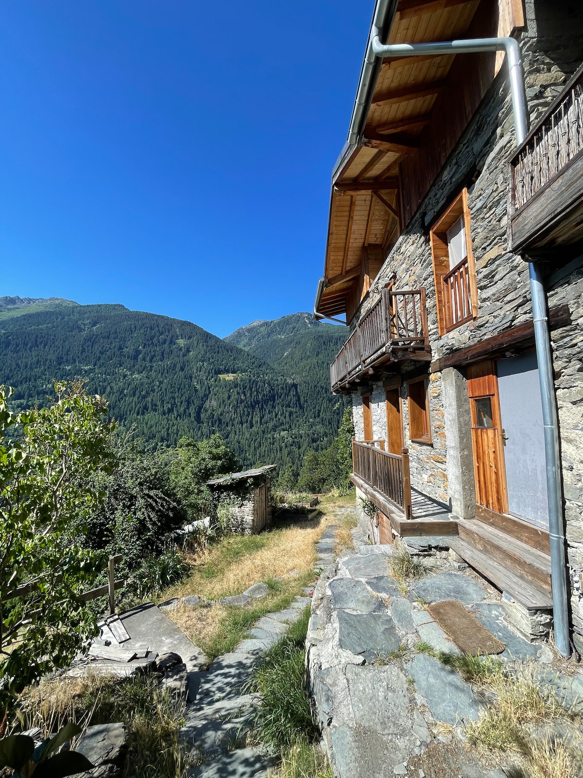 Chalet lumineux de 45m2 exposé sud à 1500m d'altitude avec une baie vitrée s'ouvrant sur une grande terrasse avec une vue panoramique sur le Mont Pourri (3780m) et la Vallée de la Tarentaise. La chalet est situé dans un petit hameau à 10min en voiture de la station de la Rosière - navette gratuite pour les enfants à 5min à pieds - qui partage son domaine skiable entre la France et l'Italie. Idéal pour 2 adultes et 2 enfants. La chambre est une mezzanine partagée avec vue. Un mazot suspendu !