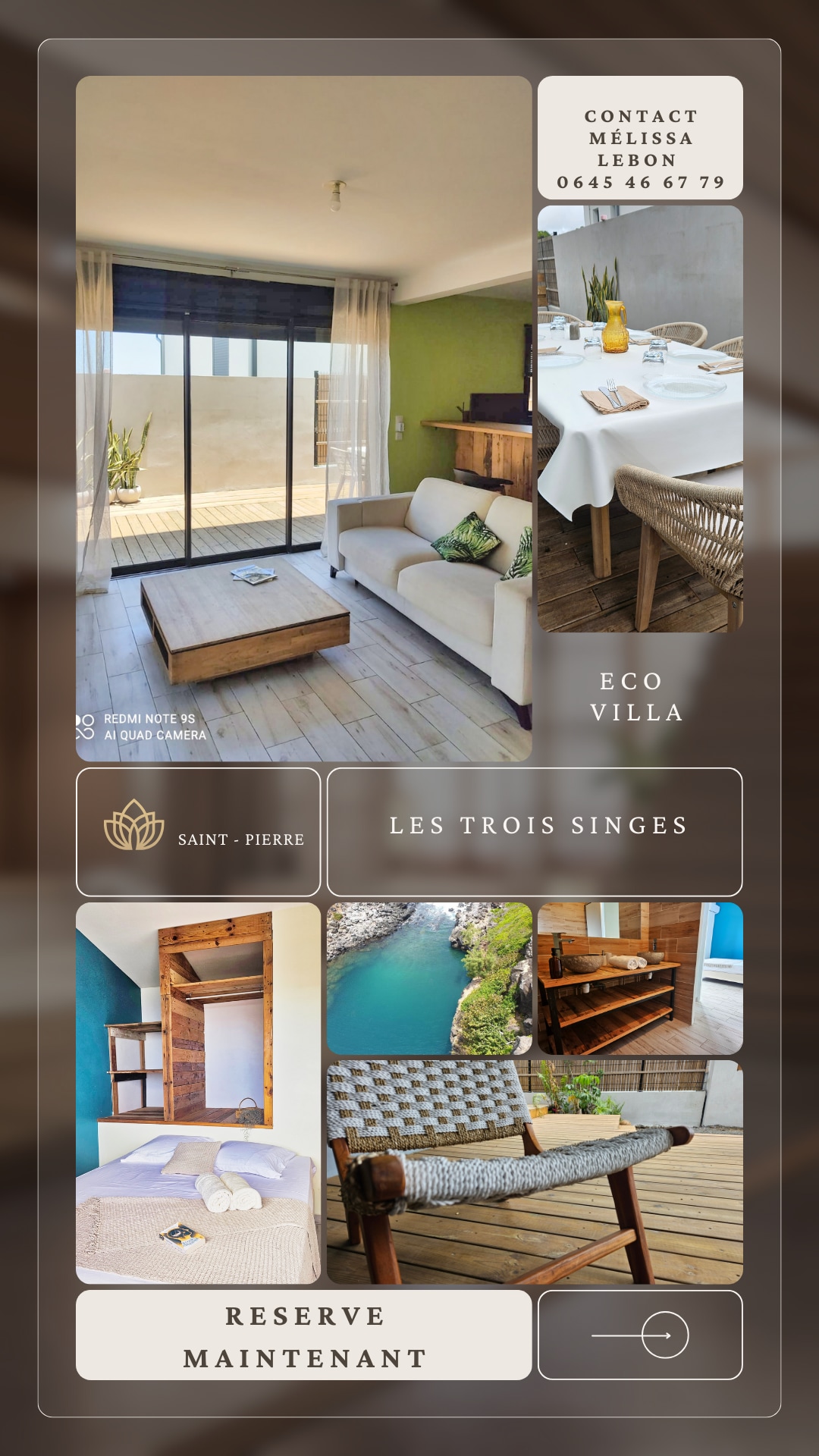 Bienvenue à la Villa Louane (100m2), perchée sur les hauteurs de Saint-Pierre, 135m d'altitude, idéale pour un séjour détente avec une vue à couper le souffle sur la mer et la ville de Saint-Pierre. Cette location allie tranquillité et panorama exceptionnel. ● Capacité jusqu'à 5 personnes ● Piscine à débordement, parfaite pour se rafraîchir en admirant le coucher du soleil. Une douche extérieure ● Une terrasse en caillebotis, 50m2 environ, avec un kiosque pour prendre un apéro et admirer la vue