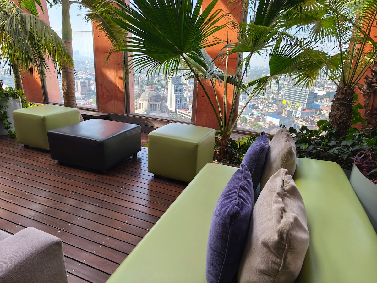 Enjoy one of the most amazing neighborhoods in Mexico City. This place is central and surrounded by restaurants, museums, and iconic landmarks within the city. The area is terrific and very well connected to the whole city. You will love the view from one of the tallest buildings in the city. Undoubtedly, it’s an outstanding place to stay and experience one of the best and biggest cities in the world.