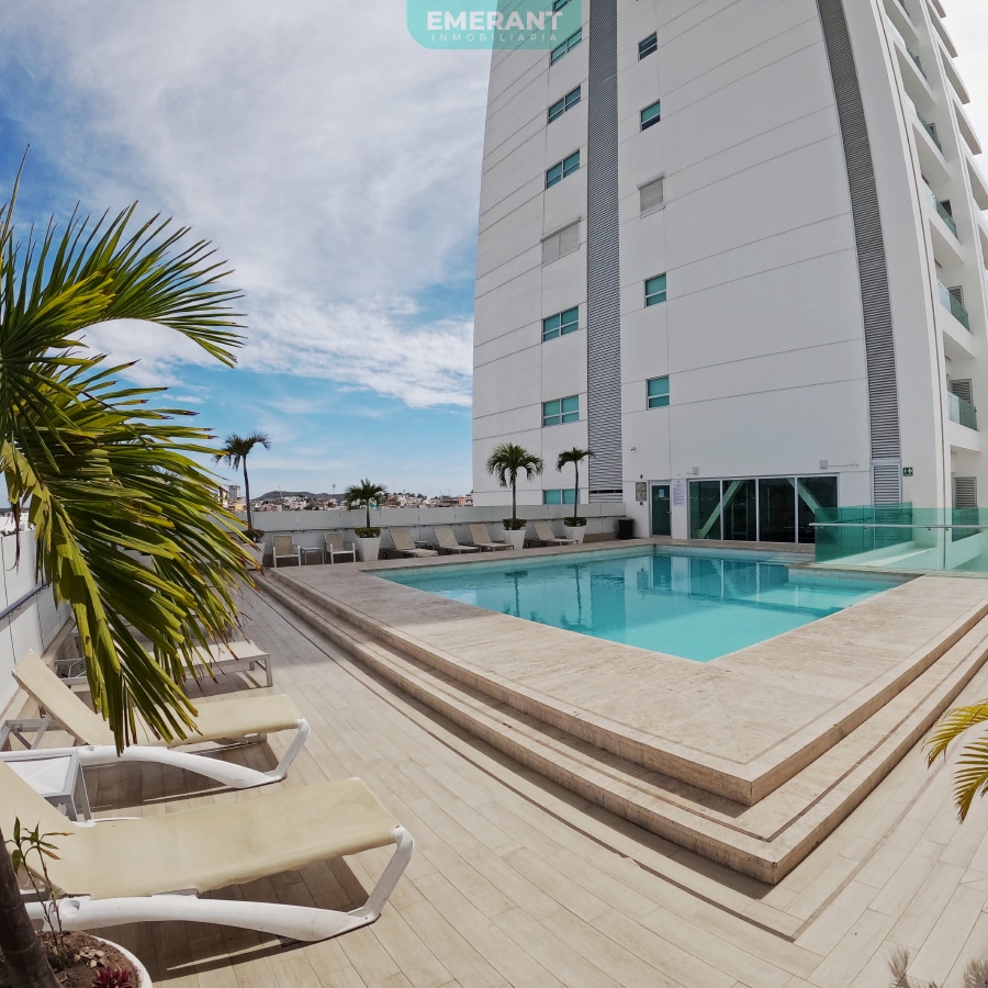 El condominio es muy seguro y cuenta con amplios espacios en todas sus áreas, ubicado justo frente a la playa, sobre el malecón (lugar donde se realiza el icónico carnaval); Al estar ubicado en un nivel Quince, se puede disfrutar de una hermosa vista y de los hermosos atardeceres que junto a las 3 islas nos brindan una experiencia inolvidable. La Playa ubicada al frente cuenta con palapas con variedad de mariscos, pescados y otras especialidades locales, así como refrescantes bebidas.