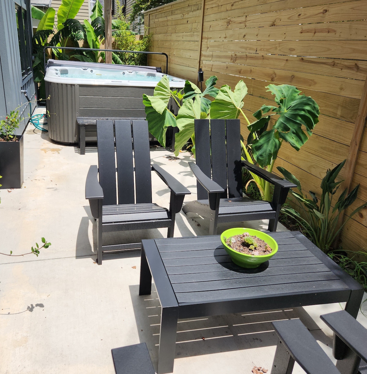 The perfect getaway with all the amenities of home! This backyard tiny house is the perfect spot for 2. Queen bed, kitchenette with Coffee, microwave, and mini fridge. We also provide dishes for your takeout. Smart Tv. WiFi also makes this the perfect spot to social distance and work on vacation if needed. Tables by couch for eating or work. Though backyard is shared with guests from front house it is very lush and has multiple sitting spaces for your own privacy.