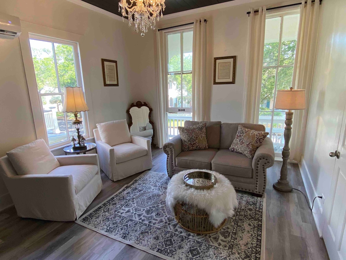 Salt & Honey is a unique, beautifully done "tiny home". Salt&Honey may be small in space, but it offers everything you need (and more) for a couples retreat, girls trip, or family getaway! Enjoy your day at the beach and come back to hang with your group underneath the home, on our beautiful patio. Fun for all ages with an outdoor swing, heated cowboy dip pool, and out door dining area. Inside the home you will love the décor, attention to detail, and fully stocked kitchen.