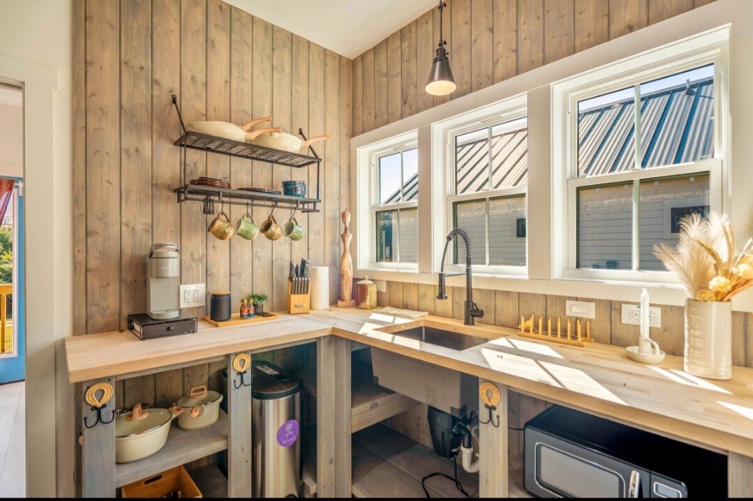 Salt & Honey is a unique, beautifully done "tiny home". Salt&Honey may be small in space, but it offers everything you need (and more) for a couples retreat, girls trip, or family getaway! Enjoy your day at the beach and come back to hang with your group underneath the home, on our beautiful patio. Fun for all ages with an outdoor swing, heated cowboy dip pool, and out door dining area. Inside the home you will love the décor, attention to detail, and fully stocked kitchen.