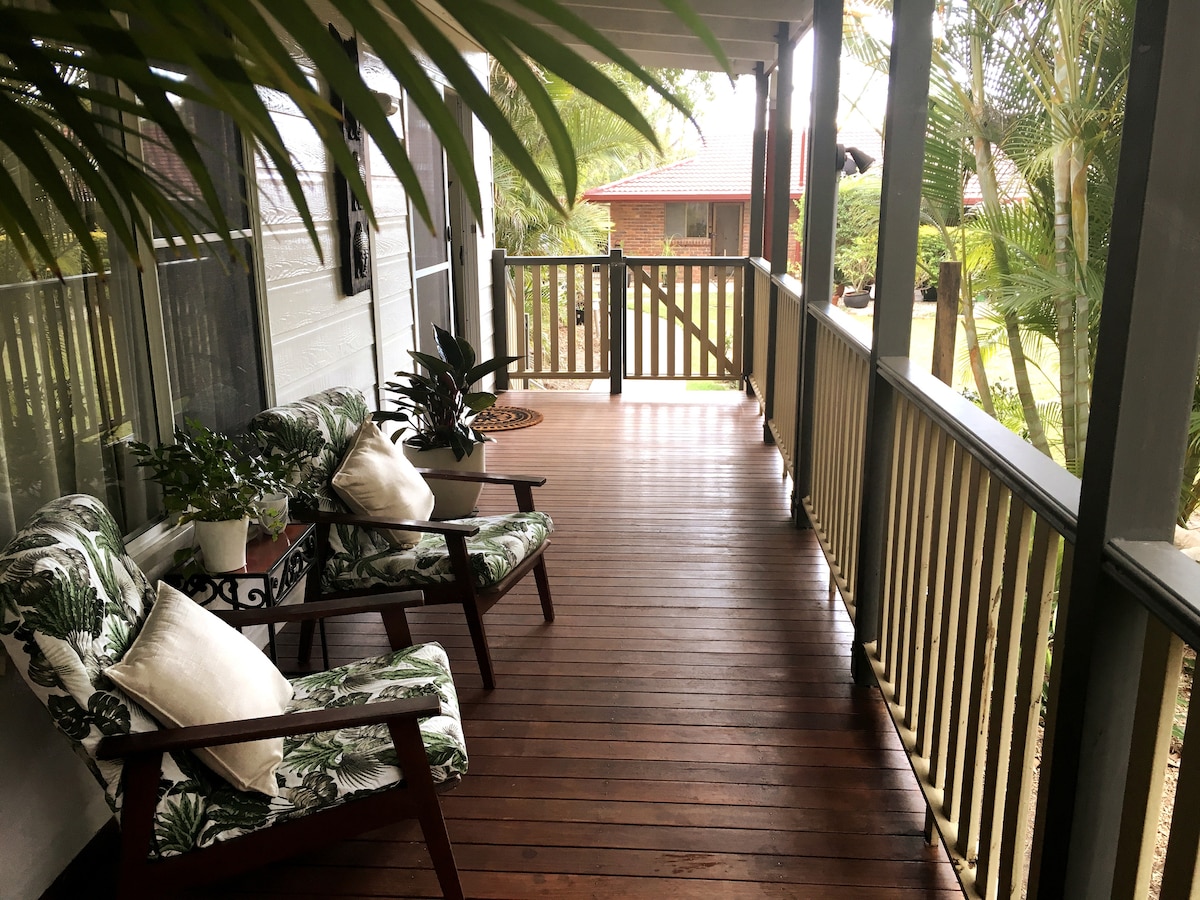 The cottage is completely separate from the main house on a half-acre block in Karana Downs 28 kms to Brisbane CBD or 12 kms to Ipswich CBD. It is fully self-contained, modern, airy, quiet and peaceful. It has a full kitchen, laundry, dining and lounge area and one double bedroom with queen bed and a bathroom with safety railings. The cottage has two split system air conditioners and two ceiling fans. It has a large private covered verandah on 2 sides and undercover parking for one car.