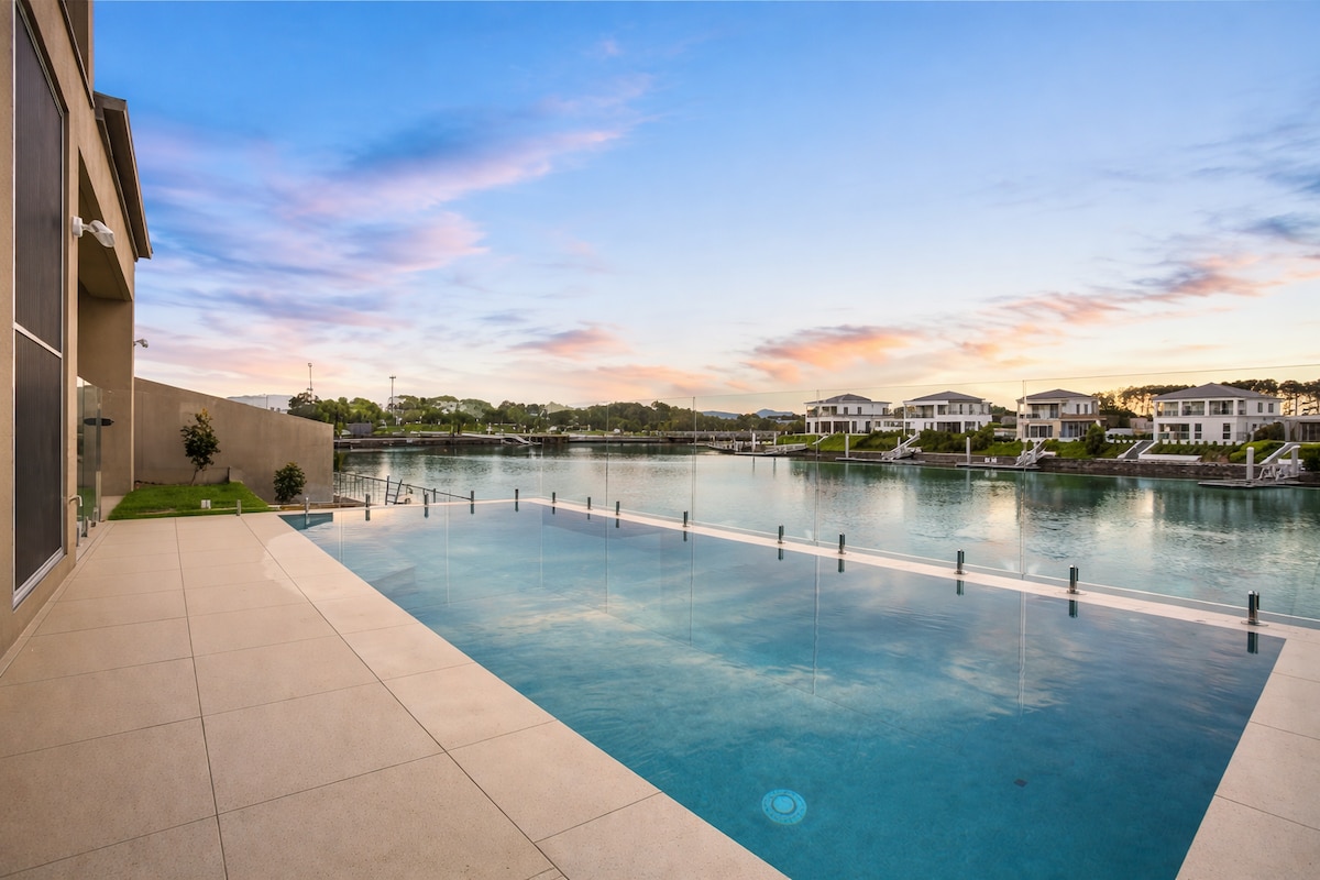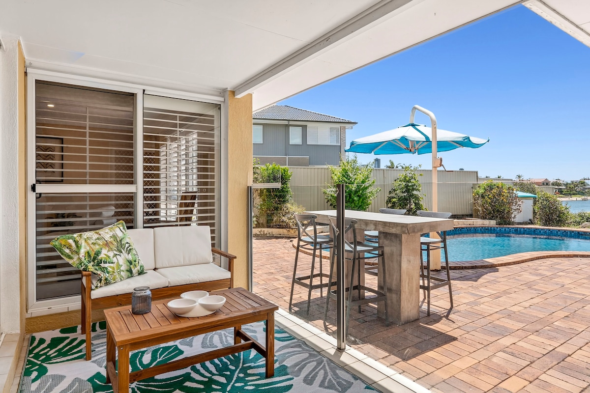 Santorini Sunset Stay - This captivating waterfront property offers 3 bedrooms. Wake up to breath-taking views of the water right from your beds. The third bedroom has a unique twist with double bunk bed, which opens directly to the pool area. Private Waterfront - Look right down to the water’s edge, connect with nature, sip your morning coffee on the patio while watching the sunrise. Close your eyes - Feel as if you are on a tropical getaway - Perfect for a dreamy escape.