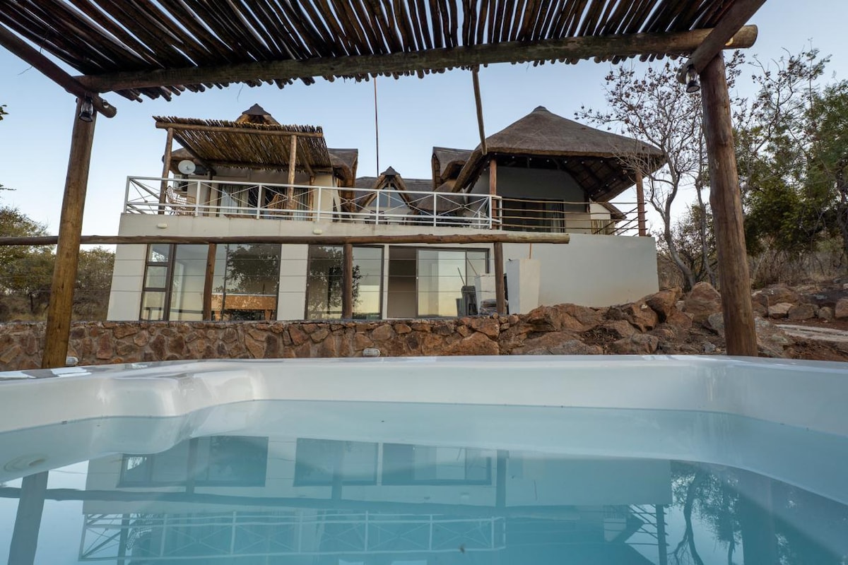 Within Mabalingwe Big-5 Nature Reserve, discover the perfect luxurious lodge in the heart of Mabalingwe Nature Reserve. This exquisite blend of comfort and nature lets you enjoy wildlife roaming around, creating an unforgettable experience. Featuring three spacious ensuite bedrooms with outdoor showers. Perfect for family or friend gatherings, with a private cottage and an ensuite bathroom is also available. Relax by the outdoor boma or the refreshing pool. Your ideal escape awaits you.