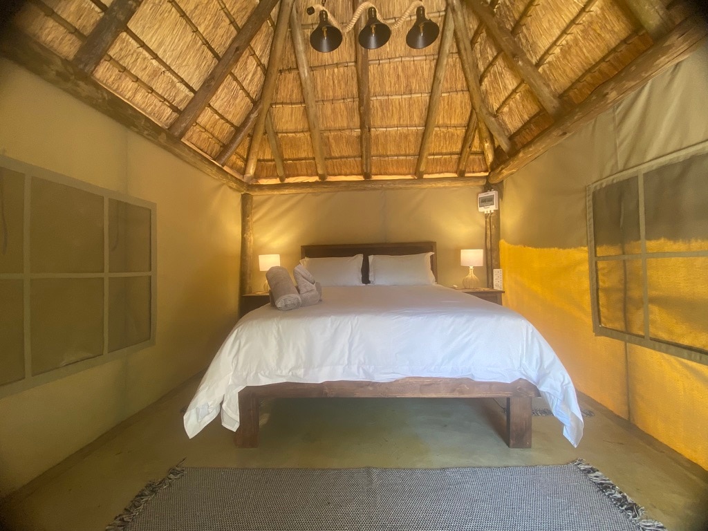 This luxury tent, in the heart of the Waterberg bushveld, is on Newburg farm at Elements Golf Reserve. A unique glamping experience, with all the comforts of home. The tent is fully equipped for self-catering with kitchenette and built-in braai. The tent sleeps 4 guests and is wheelchair friendly. TV and full DSTV. Situated 200m from a private access gate to Elements. The Luxury Tent overlooks bushveld dam where wildlife, come to drink. It is a true bushveld experience - peace and tranquility.