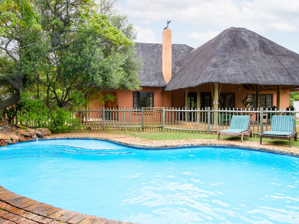 Malope's 4 luxury Safari tents are each fitted with King beds which can be converted into twin beds. Each tent has its own toilet and wash basin, in addition to the communal ablutions. The camp boasts a well equipped kitchen, braai area, and pool.