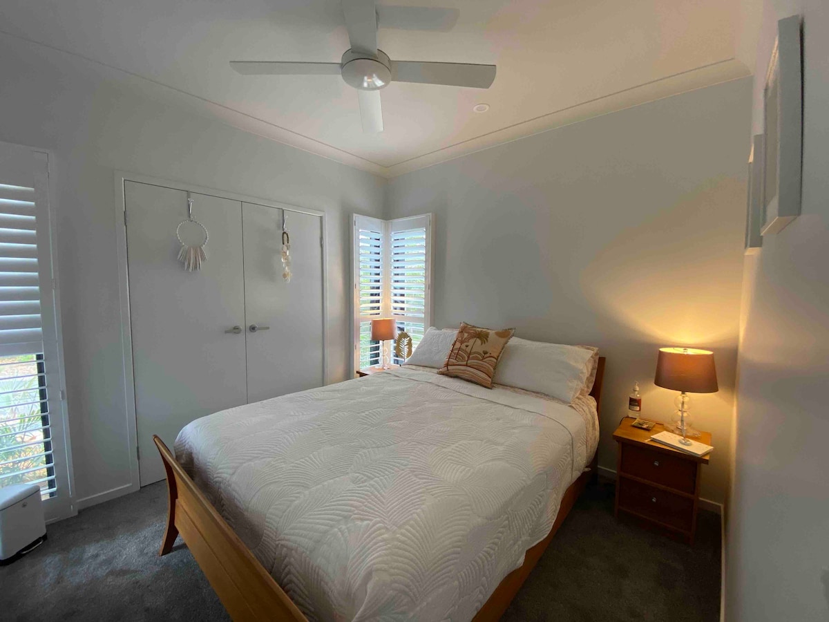 Relax in your garden retreat, a private oasis by the lake. Dine or laze on the verandah, watch the birds come and go from the tall garden trees. Walk across the quiet cul de sac to plunge into the lake - also popular for canoeing, fishing, paddleboarding - or to catch spectacular sunsets. Stroll the beach path to the surf, cafes, grassy picnic areas, kids swim spots and playground. Follow the bike path north or south or explore canoe trails. Canoe and bikes included. It's all at your doorstep!