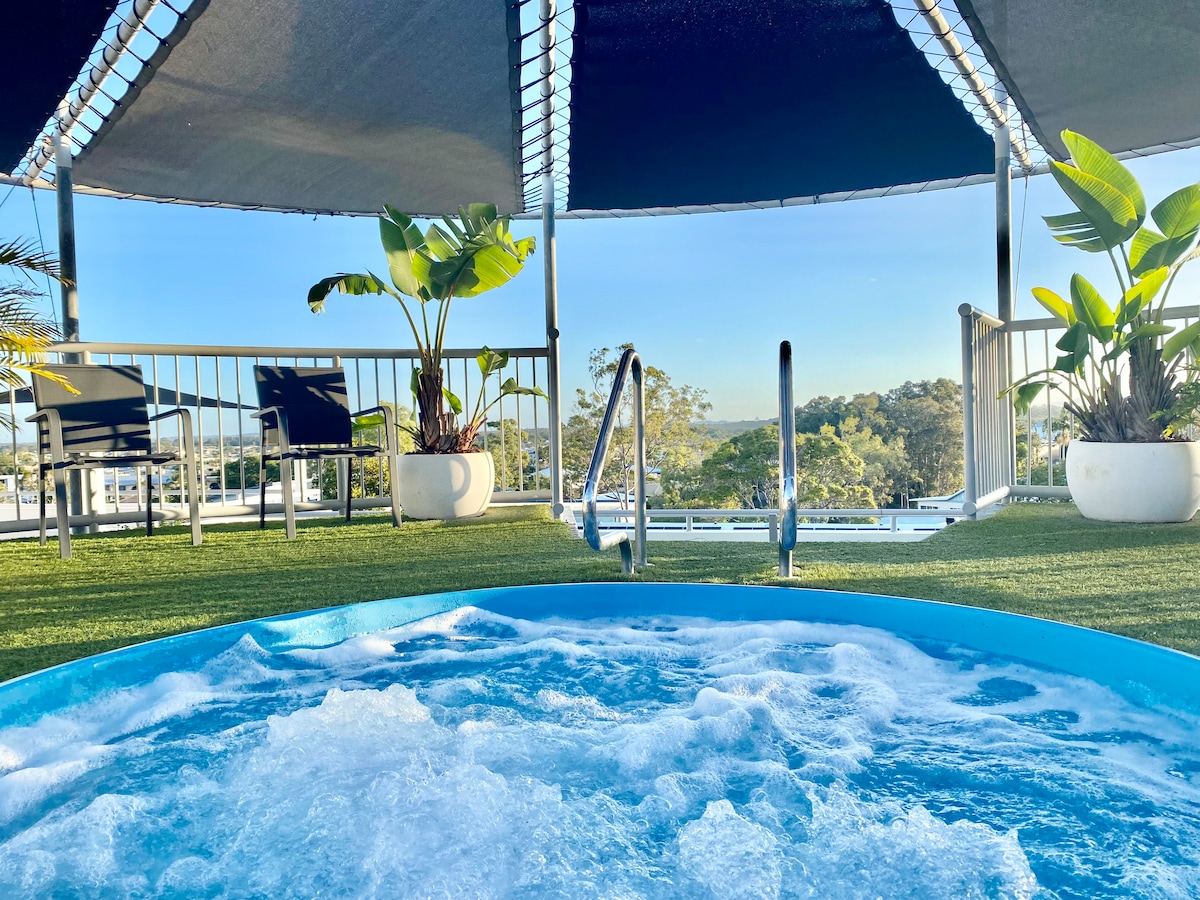 Welcome to our cosy rooftop apartment at The Beach Club in the heart of Mooloolaba! Here you will find yourself only 150m to the esplanade and 300m to the beautiful beach. Restaurants, bars, boutiques, supermarket, Surf Club and patrolled beach are all within walking distance for your convenience. Our apartment is self contained and air conditioned and you have full access to the resort facilities including pool, gym and sauna plus the rooftop bar-b-que, spa and magnesium mineral plunge pool.
