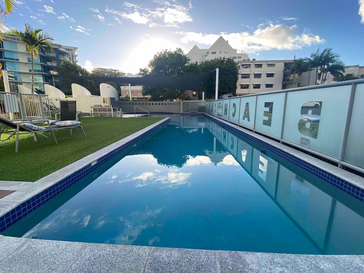 Welcome to our cosy rooftop apartment at The Beach Club in the heart of Mooloolaba! Here you will find yourself only 150m to the esplanade and 300m to the beautiful beach. Restaurants, bars, boutiques, supermarket, Surf Club and patrolled beach are all within walking distance for your convenience. Our apartment is self contained and air conditioned and you have full access to the resort facilities including pool, gym and sauna plus the rooftop bar-b-que, spa and magnesium mineral plunge pool.