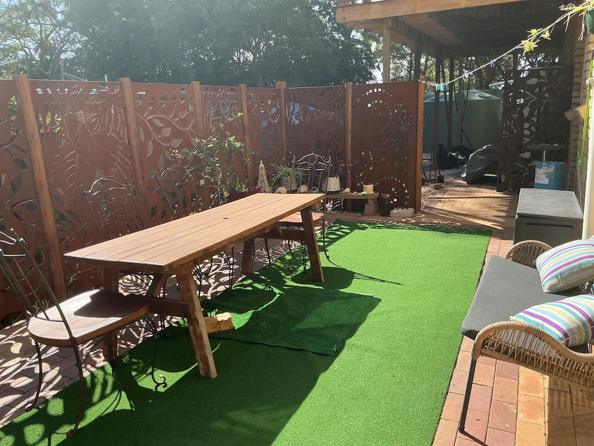 This fully equipped 1BR with private courtyard is walking distance to everything, Coles is adjacent, and the fabulous new restaurant The Cottage is right across the street. It's a little dated, but very comfortable. Suits short or long stays.