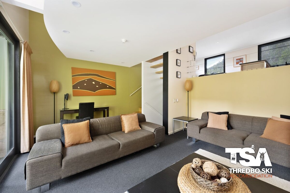 Cosy alpine cabin with superb mountain views Short walk to Thredbo Village, shops and restaurants Close to winter shuttle bus to ski slopes Studio loft has a queen loft bedroom and a double sofa bed in lounge, a fully equipped kitchen and bathroom. Suitable for couples or small families (one child)