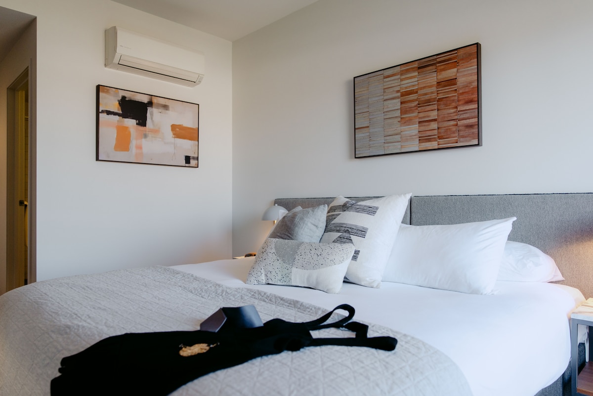 One Bedroom Apartment includes a separate bedroom with a king bed or two single beds and a built-in robe with lots of storage space. The fully-equipped open-plan kitchen has everything you need, with fridge/freezer, oven, stovetop, microwave and dishwasher. For added comfort, enjoy free WiFi, smart TV, individual air conditioning/heating, in-room laundry facilities as well as a Nespresso coffee machine and pods to help you recharge.