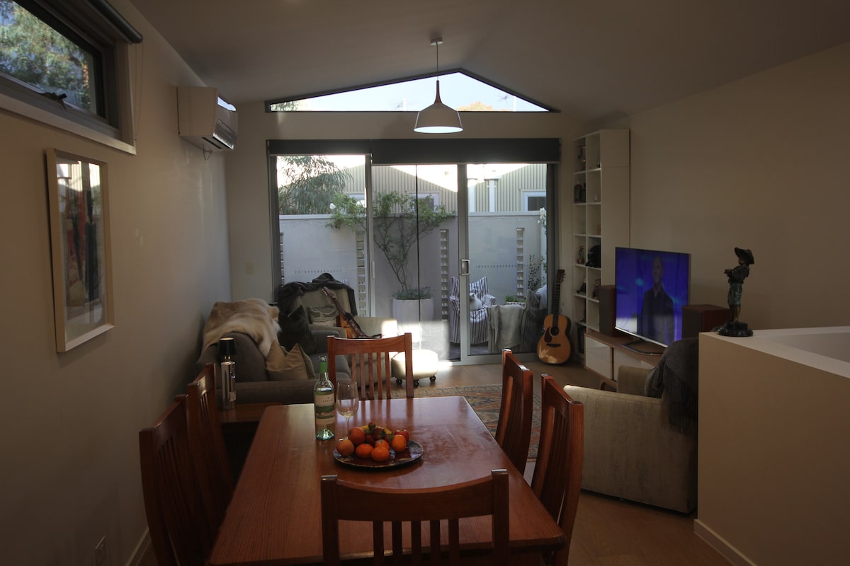 Compact unit in beautiful Flemington! Entire place to yourself. Free parking. (tight space - see below) Self check-in. Kitchen with espresso machine, stove, fridge, and microwave. Air con.Leather couch. 50-inch Smart TV. Queen bed in separate bedroom. Wooden plantation shutters. Dryer and washing in unit free to use. Short stroll to CBD-bound trams, Newmarket and Flemington Racecourse and eating options on both Union Road and Racecourse Road. 10 minutes walk to Newmarket Station direct to city