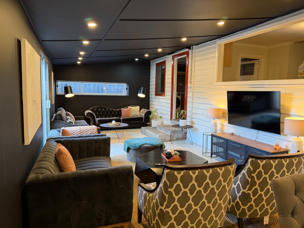 Super Sunshine Stay Home offers a bright, beautifully renovated space designed for relaxation and connection. Ideal for families or groups, this home features air conditioning in every room, modern furnishings, and plenty of space to unwind. With 3 bedrooms, 2 bathrooms, and a comfortable living area with a flat-screen TV, this home is perfect for both short visits and longer stays. Step outside to enjoy the private backyard with a fire pit – great for cozy evenings and casual gathering.