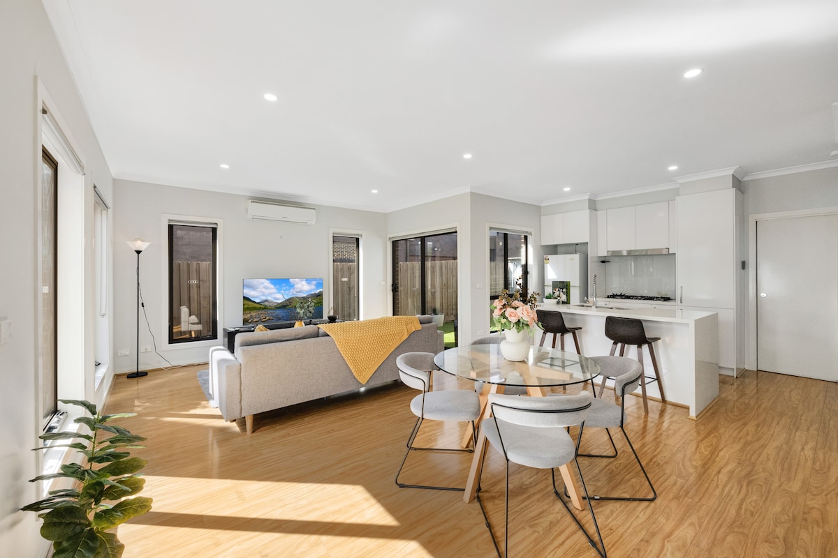 Central and Modern double storey home only 15 minutes from Melbourne City CBD and 13 minutes from Melbourne Airport. After entering a large double front door hidden behind a private bamboo garden you will find 4 large bedrooms, 4 bathrooms a pool, BBQ area and a basketball court. The train station is only a few hundred meters away (5 min walk) and our local area is full of vibrant cafes, wine bars, restaurants, shopping & grocery stores all within walking distance form the house.