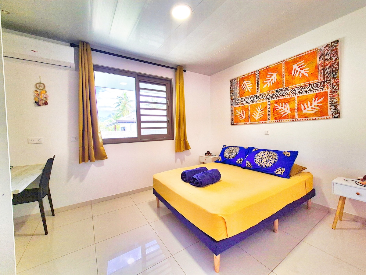 Have fun with the whole family in this chic accommodation. Snorkel in our magnificent lagoon or hike to the waterfalls, or Percé Mountain for the more adventurous. Or simply relax on the terrace admiring the view. Take advantage of the nearby restaurants, caravan, and grocery store to recharge your batteries. Photograph surprising and unforgettable sunrises over our lagoon. Enjoy our lush garden full of fruit trees. Welcoming you will be a great pleasure.
