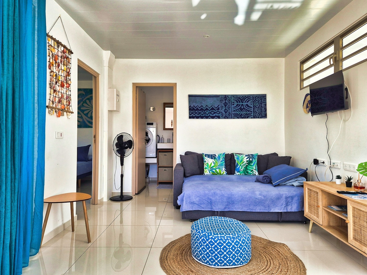 Bienvenue, Atiha Blue Lodge peut accueillir 2 adultes + 1 enfant. Le lodge est idéalement situé en bord de mer. Sa large terrasse offre une vue magnifique sur la paisible baie d'Atiha et donne un accès direct à une petite plage de sable gris: kayak ou surf juste en face. Il comporte: chambre principale vue mer, 2ème chambre mezzanine, salle d'eau moderne, kitchenette équipée, grande terrasse avec table à manger, salon de jardin et transats. Kayak, barbecue et vélos sur demande. A bientôt