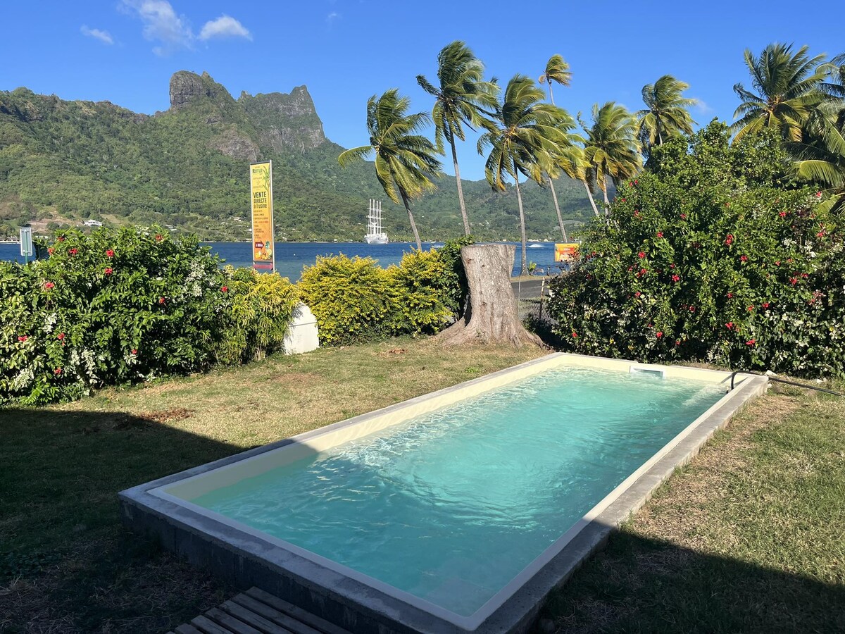 Located in a lovely residence at 6 min from the ferry or airport Of Moorea, our bungalow overlooking the beautifull Beach of Temae (5 min by foot). Ideal for couples, it offers all the comfort to enjoy Moorea Island. The view is wonderfull day or night, And you can swim in the Lagoon or in the swimingpool for a little Aquabike training. A full furnish kitchen and a large bathroom are at your disposal.